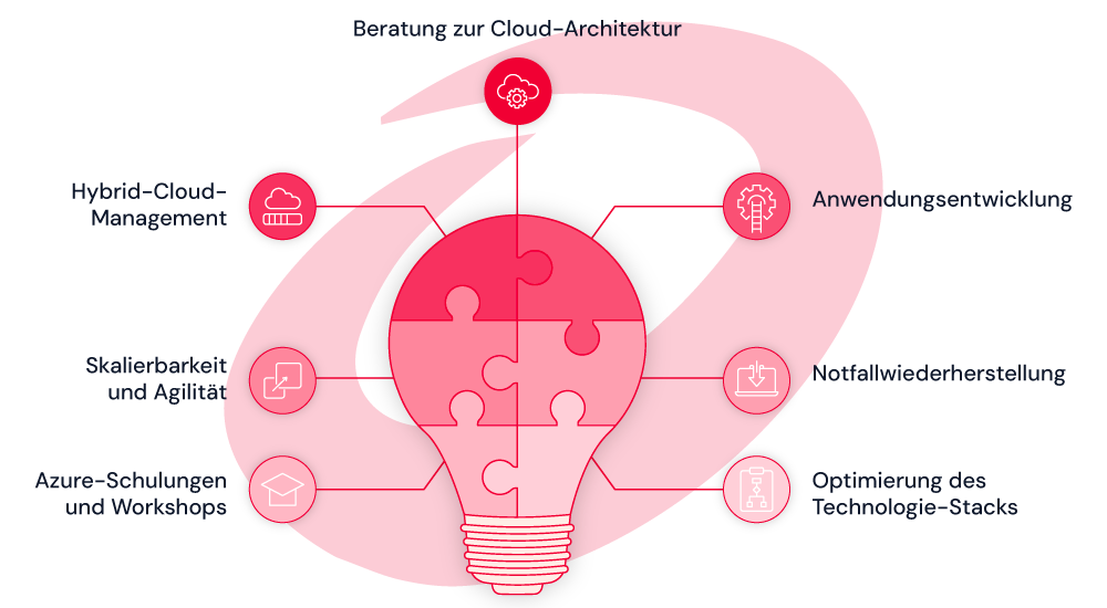 optimieren. Mit unserer Expertise in Cloud-Architektur und Anwendungsentwicklung auf Microsoft Azure und Open Telekom Cloud bieten wir